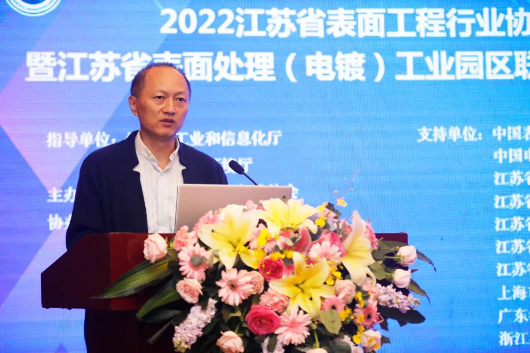 会议首先由江苏省工业和信息化厅装备工业处赵广志副处长致辞。赵副处长首先对2022江苏省表面工程行业年会暨江苏省表面处理(电镀)工业园区联席会议成立大会的召开表示热烈祝贺!他表示,表面工程是国民经济发展不可或缺的制造业门类,作为制造业的一项基础制造工艺,不仅广泛服务于机械制造、家电、金属制品和轻工等传统产业,同时在航空航天、核工业、舰船、轨道交通等重要领域以及电子信息、高端装备制造、新能源汽车、节能环保等新兴产业中也发挥着十分重要的作用。最后,赵副处长对今后的行业发展工作提出了以下建议:要建设现代化产业体系,着力推动高质量发展;切实把创新作为发展第一要务,不断增强自我创新能力;找准园区定位,坚持差异化和特色化发展。