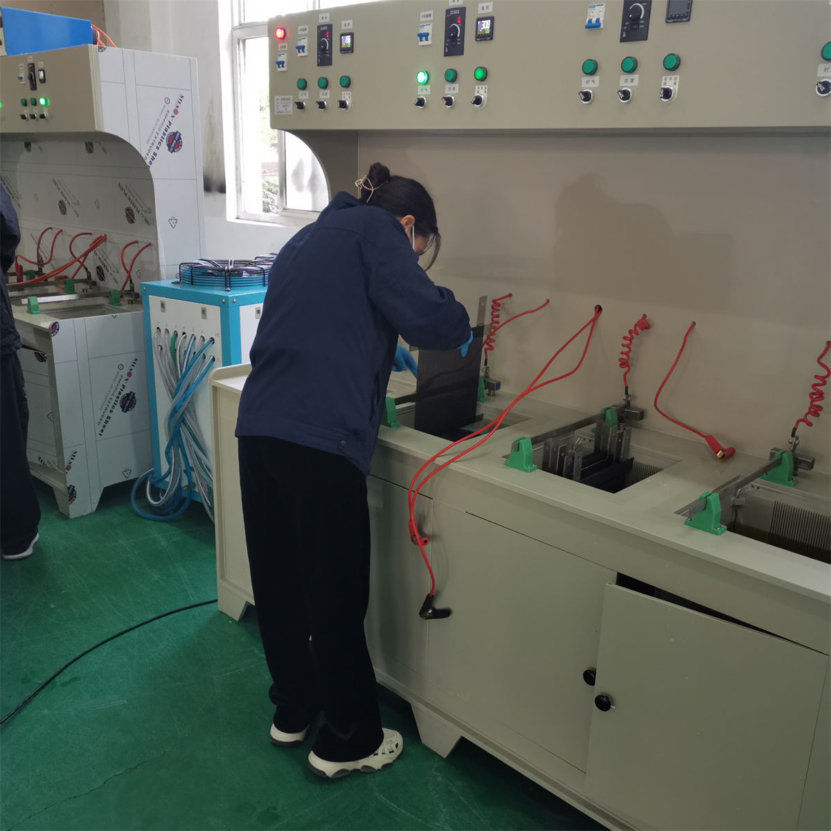 江苏梦得研发室通过近几年的对外交流,集合团队的智慧,设计开发了一套电镀试验一体机。该试验系统集成了多个电镀槽体,并对每个槽体配备了温控系统、电解液循环过滤系统、电源控制系统,并实现阴阳极距离可调,可模拟多种电镀工艺的生产现场。电镀试验一体机不仅可以做电镀实验,还能够做标箔后处理的实验,实现标箔后处理工艺中镀铜、粗化、固化、镀锌镍、镀铬以及防氧化涂覆的需求,从而对各个工序实现改良和突破。用试验方法模拟电镀生产工艺条件的必要性,为越来越多的广大科研工作者和生产厂家所认识。通过模拟试验,能够为改进工艺操作,研究新电镀液配方及新的处理方法等提供可靠手段,从而达到提高生产质量及产量的目的。