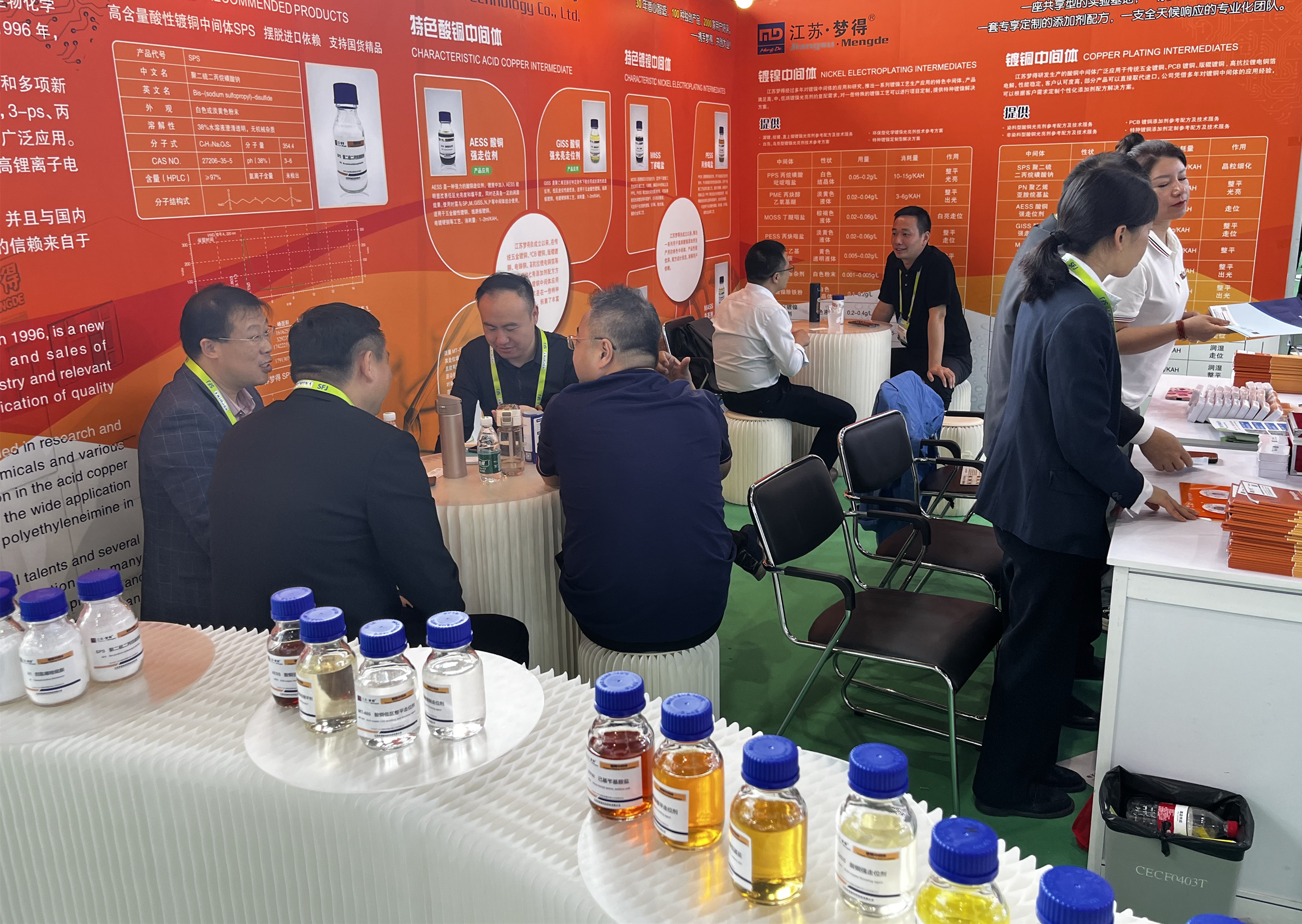 会展期间,江苏梦得展出了近二十几年来总结的电镀中间体在五金电镀的普遍应用解决方案,为参观的客户解惑答疑,解决了他们的技术痛点,获得了一致好评。