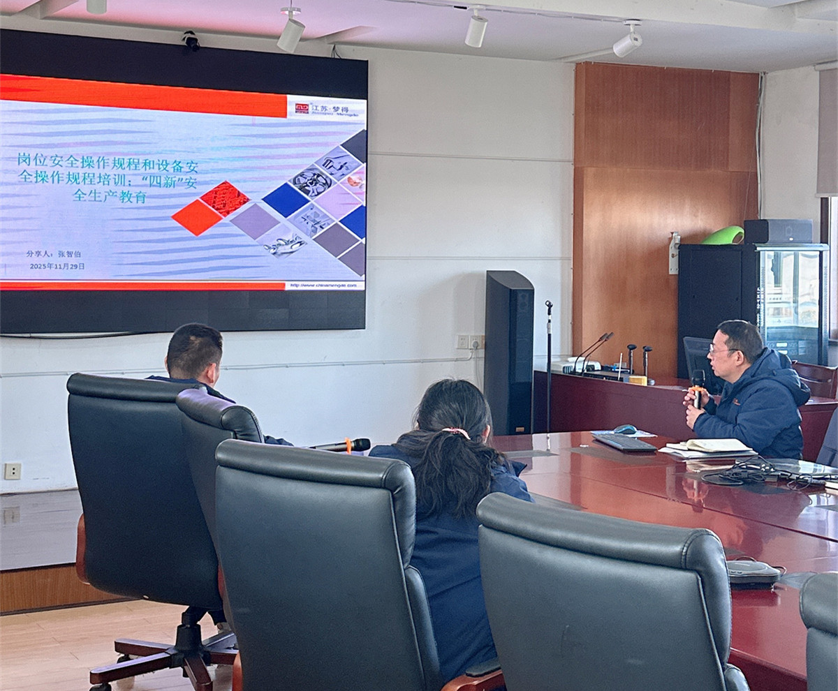 岁末凝心,安全聚力。2025 年 12 月 26 日下午,江苏梦得新材料科技有限公司在总部三楼会议室召开了12 月安全培训暨年度安全生产总结部署会。全体员工齐聚一堂,系统复盘 2025 年安全工作成效,细致梳理现存问题,科学谋划 2026 年重点任务,以 “安全第一、预防为主” 的坚定信念,为全年安全工作画上圆满句号,向着 “本质安全” 目标稳步迈进!
