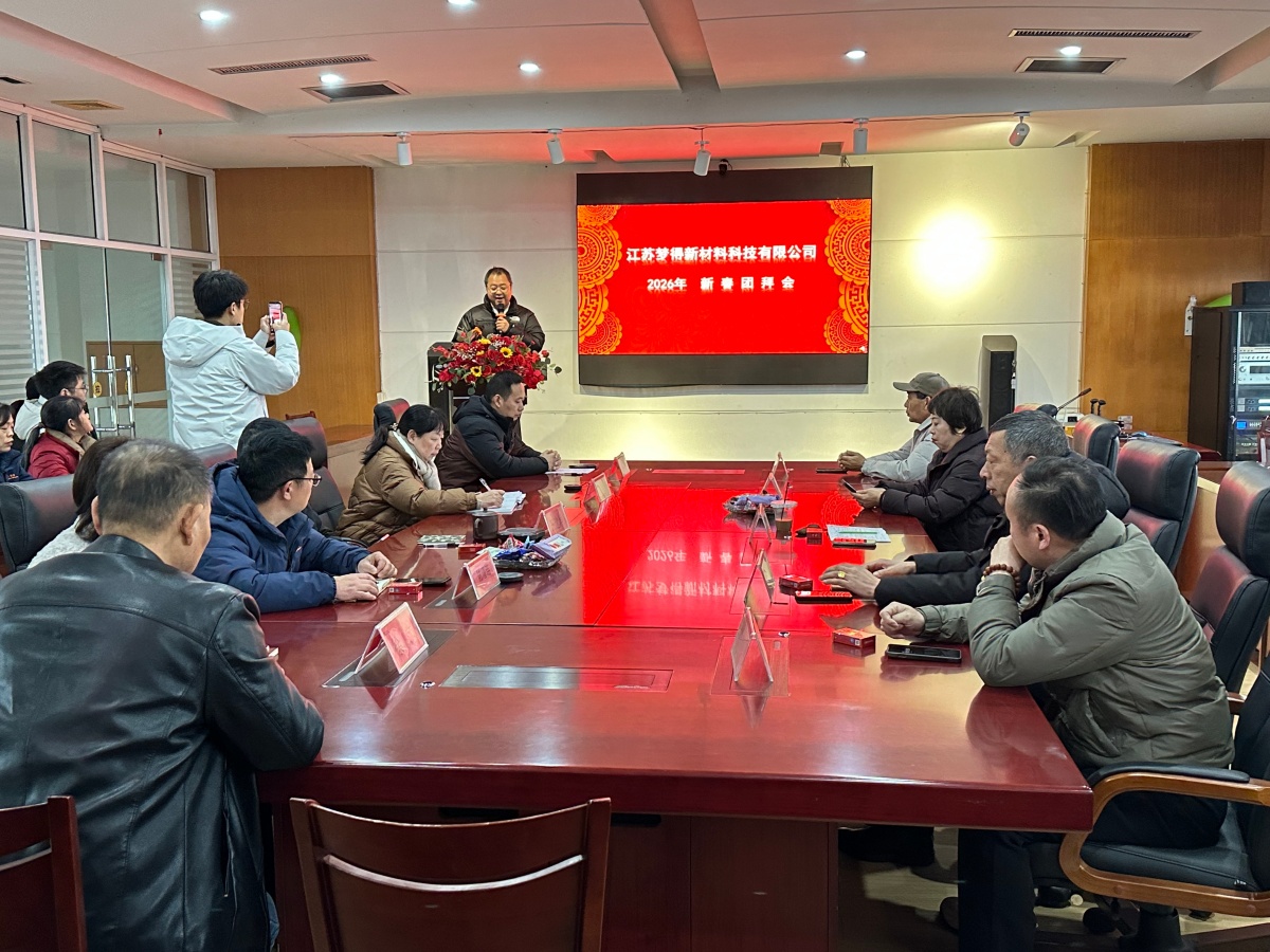 春风拂煦,潮涌江南;龙腾马跃,梦启新章。在丙午马年的喜庆氛围里,江苏梦得新材料科技有限公司于2026年2月24日上午,在公司三楼会议室召开了2026年新春团拜会。这场承载着团圆温情与奋进力量的盛会,既是对过去一年深耕细作的致敬,更是对新岁笃行致远的誓师。以初心聚合力,以壮志绘蓝图,在欢声笑语与豪情满怀中,开启江苏梦得高质量发展的崭新征程。