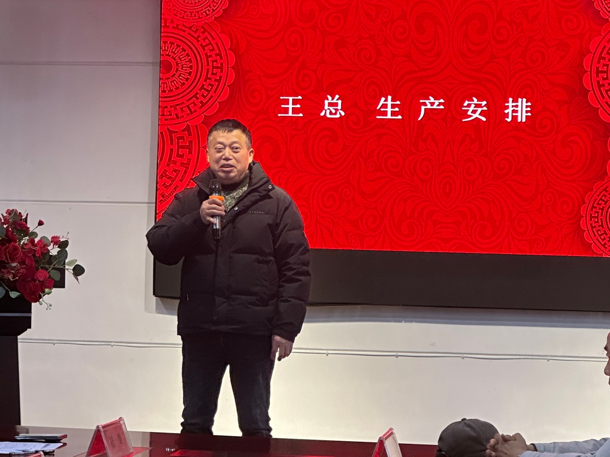 公司副总经理王建坤先生登台,对 2026 年江苏梦得的生产工作进行全面部署。他以 “提质、增效、保供、安全” 为核心,明确了新一年生产工作的目标与举措,句句务实,字字铿锵。