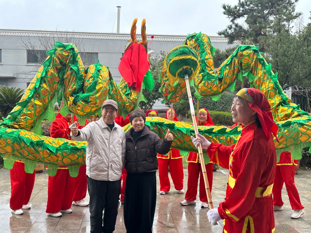 伴随着铿锵有力的鼓点,象征着吉祥与腾飞的金色巨龙昂首登场,龙身蜿蜒矫健,龙鳞在阳光下熠熠生辉,龙爪遒劲有力。舞龙队员们身着统一服装,精神抖擞、配合默契,挥舞着巨龙完成了 “金龙腾飞”“龙游四海”“盘龙献瑞”“龙腾梦得” 等一系列高难度动作。